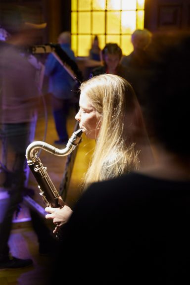 Eine Momentaufnahme von Maximilian Haft – Violine, Ingrid Schoenlaub – Cello (Gastmusikerin) , Virgile Vienne – Kontrabass (Gastmusiker)