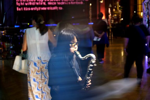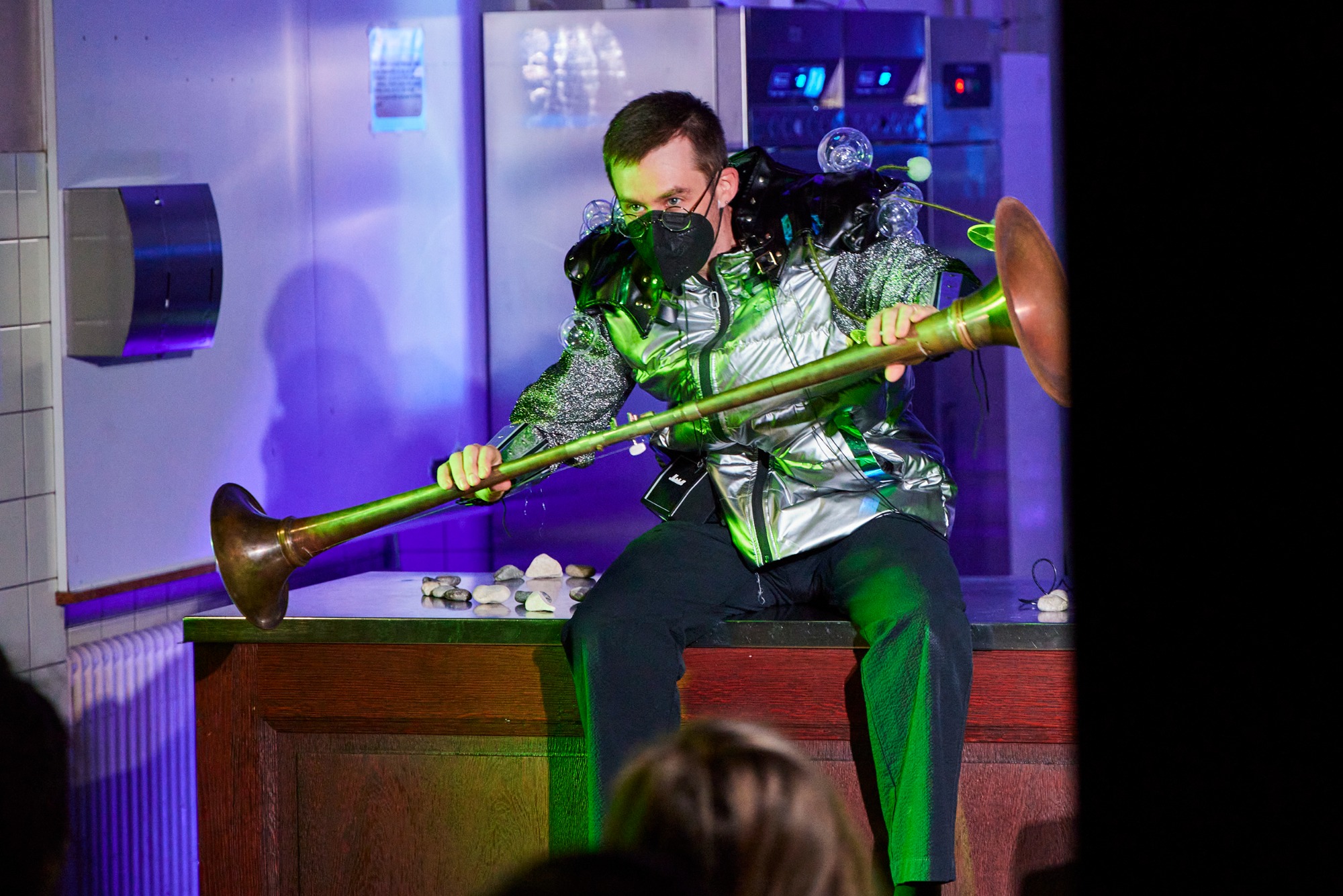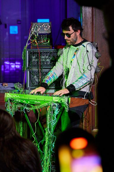 18.07.25 - Kevin Toksöz Fairbairn mit «Lap Brass Guitar» und Setup von Katharina Rosenberger mit Geige und Plattenspieler in Zürich