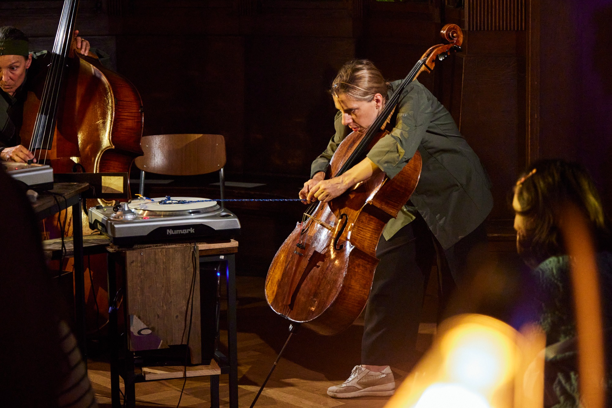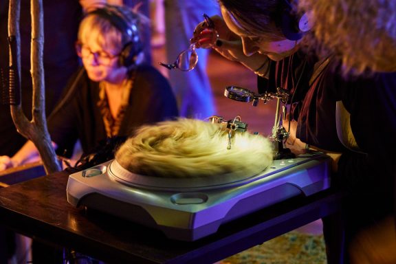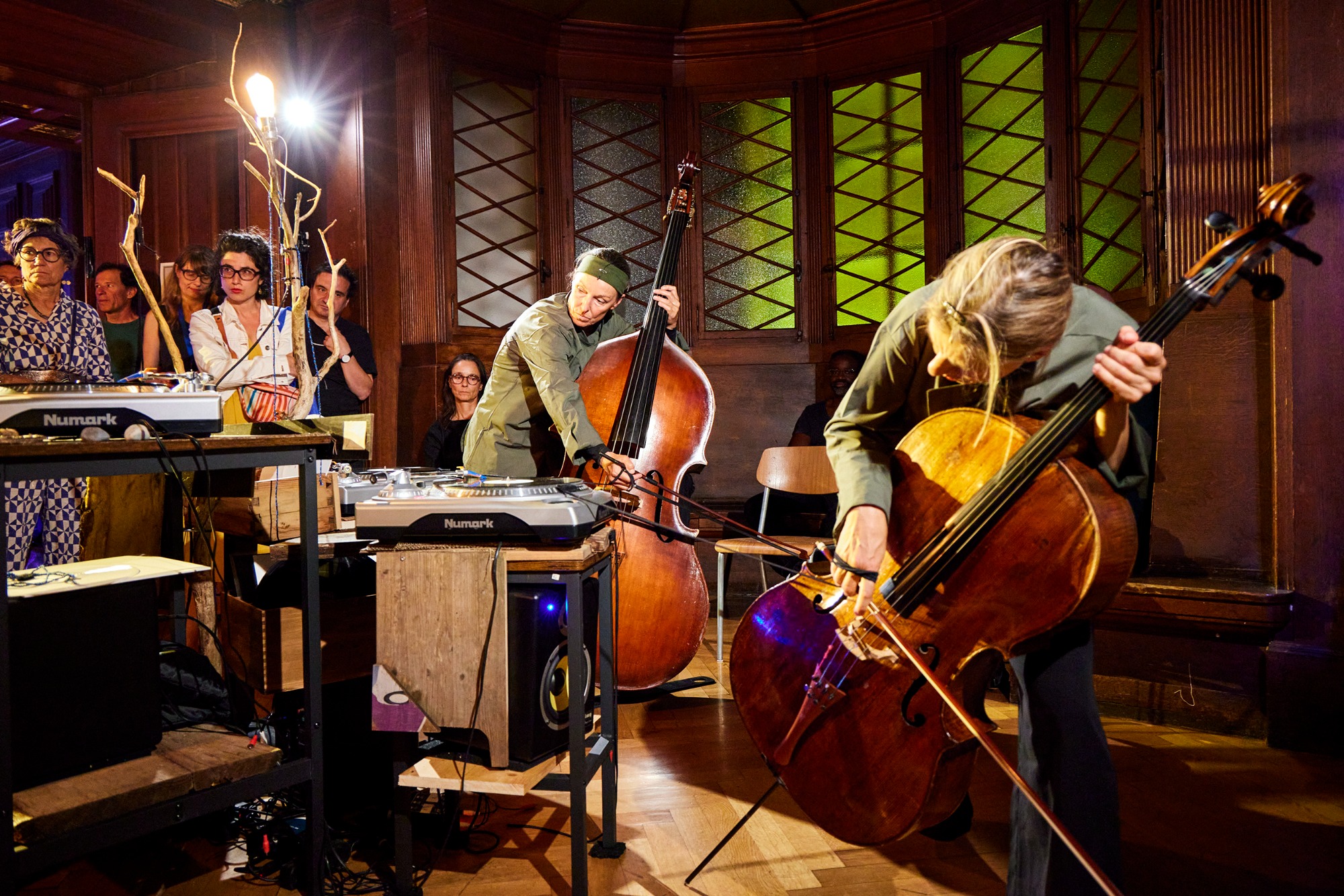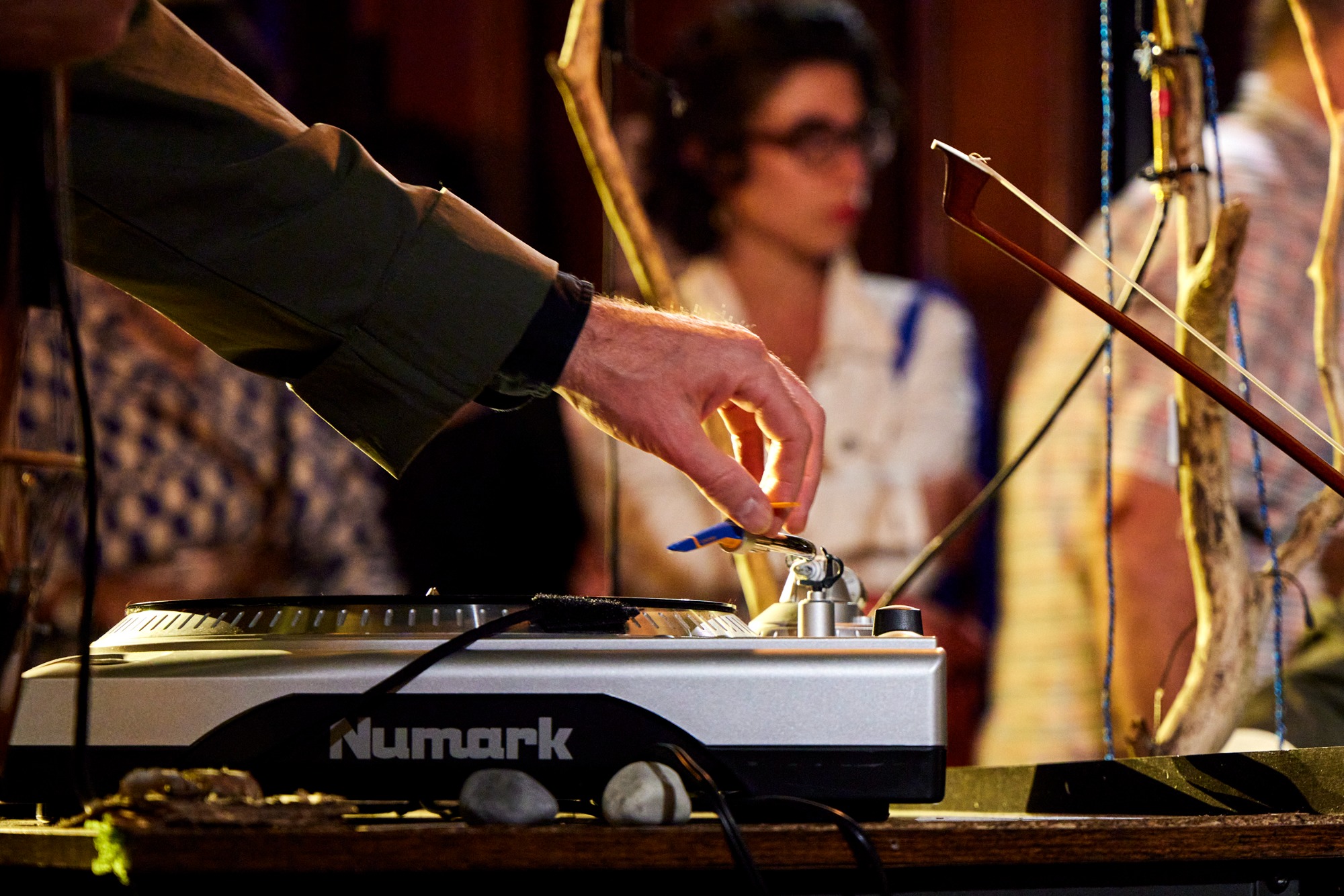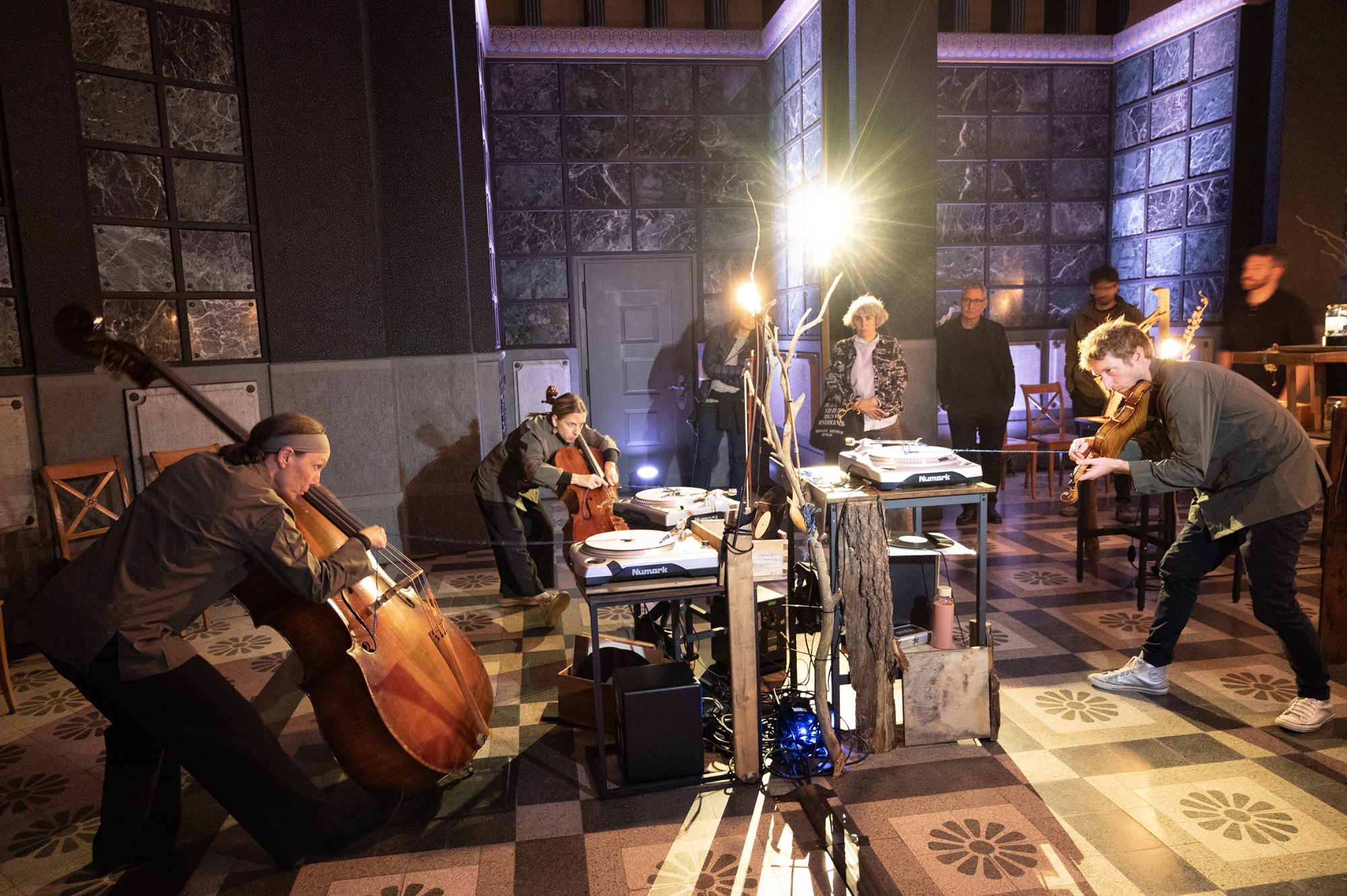 Bild 1: Turntables warten in der Archiv-Zone auf das Streichtrio vom Enselmble Contrechamps