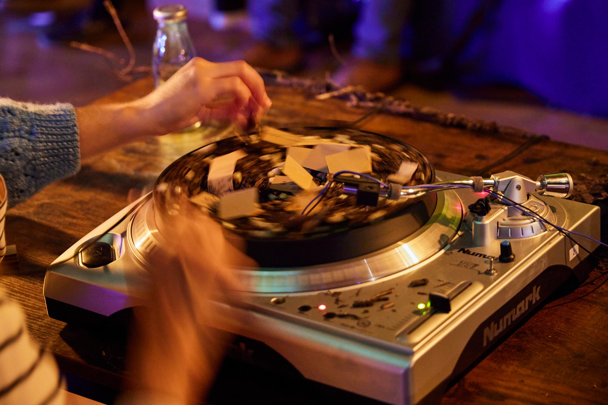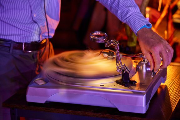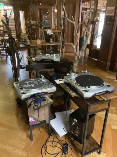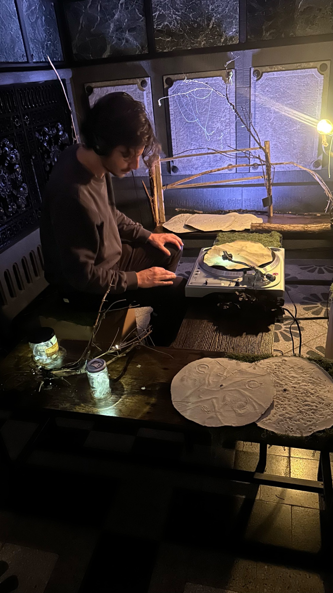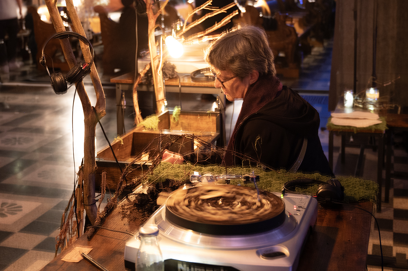 Bild 1: Turntables warten in der Archiv-Zone auf das Streichtrio vom Enselmble Contrechamps